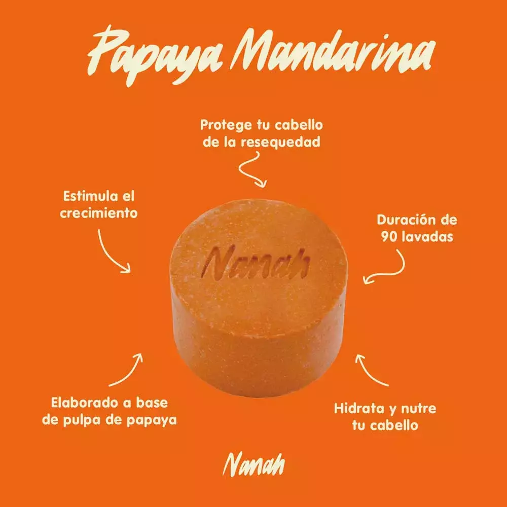 Nuestro Shampoo de Papaya Mandarina es ideal para cabellos secos, graso o con tendencia a caida, elaborado a base de pulpa de papaya deshidratada y aceite esencial de mandarina, protege tu cabello, aporta elasticidad, consiguiendo un cabello más fuerte, brilloso y sano.